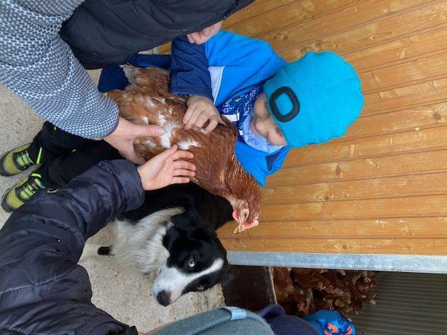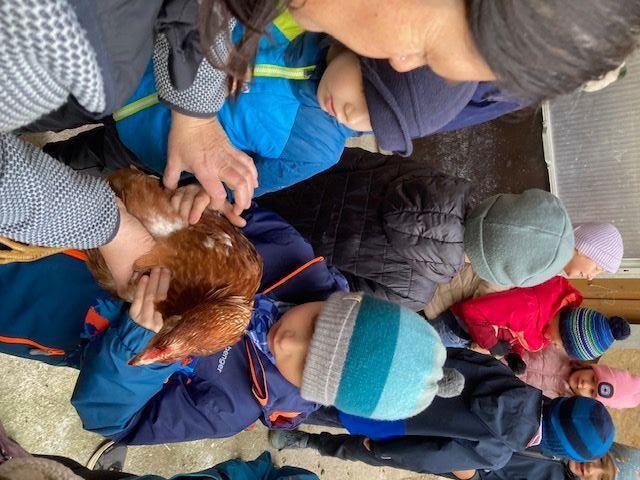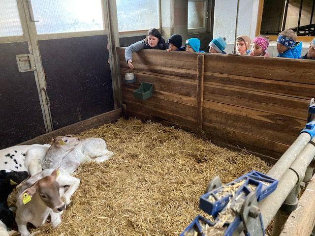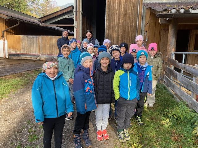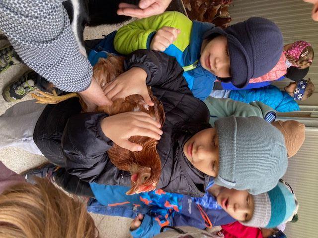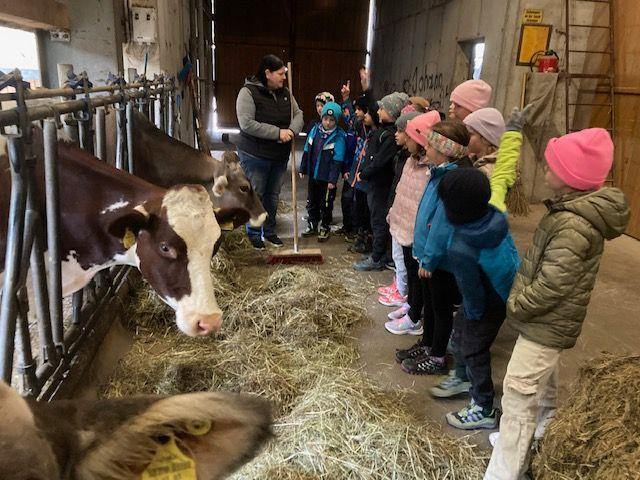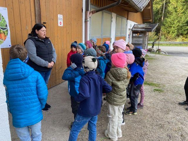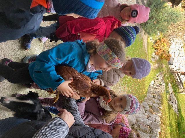 Wir durften einen aufregenden Vormittag auf dem Bauernhof von Ortsbäuerin Barbara Spielmann und ihrem Mann Martin verbringen. Mit großer Begeisterung bestaunten die Kinder die Kühe, die Kälbchen, die Ponys und die vielen Hühner – und natürlich wurde auch fleißig gestreichelt! Besonders spannend war, als die Melkmaschine in Betrieb genommen wurde. Große Freude gab es auch, als die Kinder frische Eier fanden und sie vorsichtig zwischen den Hühnern hervorholen durften. Zum Abschluss wartete eine leckere Jause mit Gemüsesuppe und frischem Karottenbrot – alles aus regionalen Produkten zubereitet.
