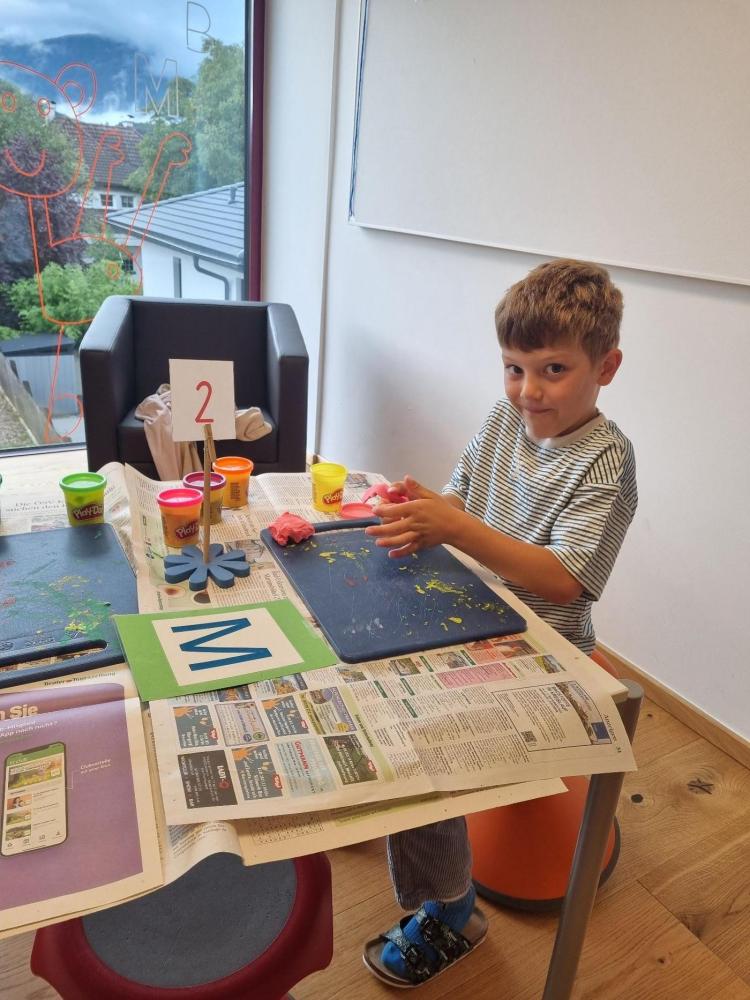 Einmal pro Woche findet in der 1. Klasse unser Buchstabentag statt. An diesem Tag dreht sich alles um einen neuen Buchstaben. Die Kinder arbeiten dazu an abwechslungsreichen Stationen, an denen sie schreiben, hören, basteln, legen und spielerisch üben können. Durch das Lernen mit allen Sinnen entdecken die Kinder Buchstaben auf vielfältige Weise und verankern diese besonders gut. Der Buchstabentag sorgt immer für viel Freude!