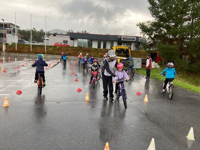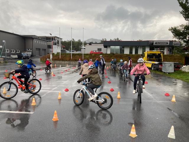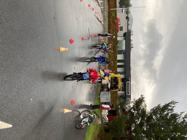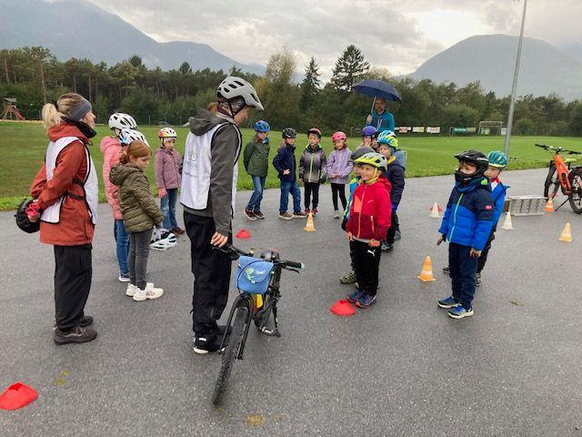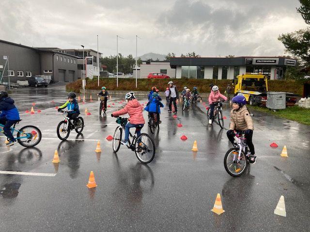 Trotz grauem Himmel, leichtem Regen und kühlen Temperaturen ließen sich die Kinder das Fahrtechniktraining mit dem Fahrrad nicht nehmen. Mit viel Begeisterung übten sie, wie man sicher bremst, Kurven fährt und das Gleichgewicht hält – wichtige Grundlagen, um im Straßenverkehr selbstbewusst unterwegs zu sein.