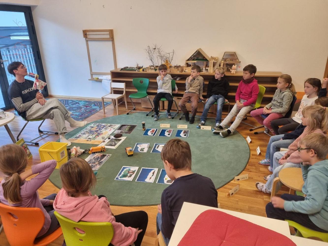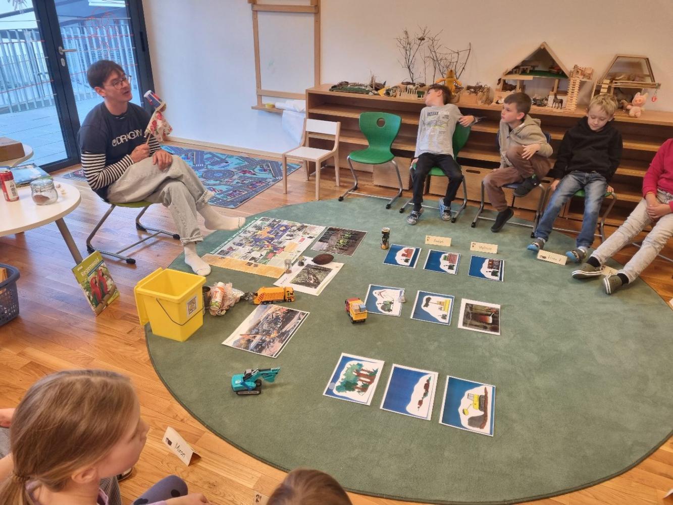 Im Rahmen unseres Umweltbildungsprogramms besucht uns derzeit regelmäßig ein Umweltexperte. Kindgerecht und anschaulich wird den Kindern erklärt, wie wichtige Rohstoffe wie Erdöl entstehen und warum ein bewusster Umgang mit Ressourcen so bedeutend ist. Besonders spannend fanden die Kinder die Beispiele rund um Metall und Aluminium - vom Recycling bis zur Wiederverwertung im Alltag.